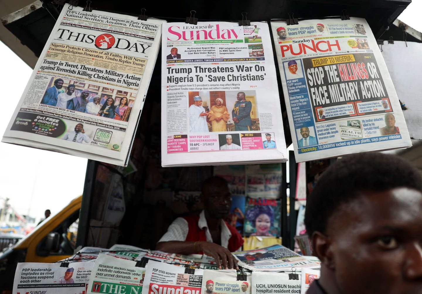 Nigeria newspaper stand in Lagos on November 2nd 2025. (Sodiq Adelakun - Reuters)